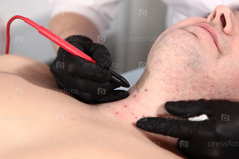 Врач удаляет многие мелкие папилломы с помощью лазера на теле человека, ожоги кожи, ближайший взгляд. Концепция однодневной операции. Удаление невуса, родинки, папилломы или родимого пятна. Косметическая процедура