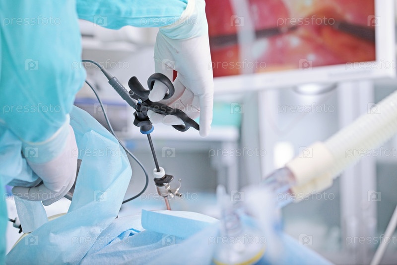 Команда хирургов.Лапароскопические инструменты в руках хирурга.Минимально инвазивная операция.Современные операции на животе.Хирургическое вмешательство через небольшие проколки