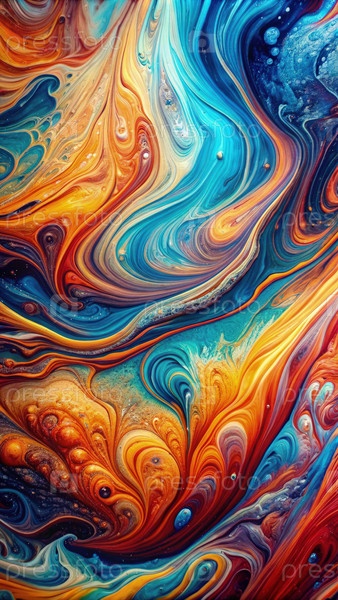 Абстрактное флюидное искусство с вращающимися цветами и динамическими узорами