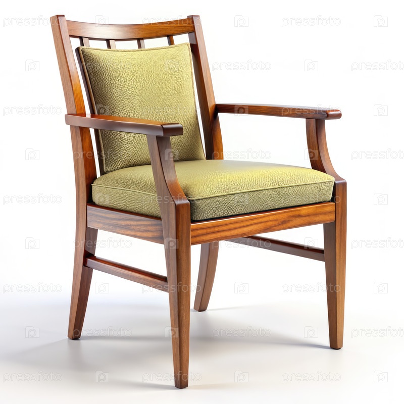 Деревянный стул с зелеными подушками на белом фоне