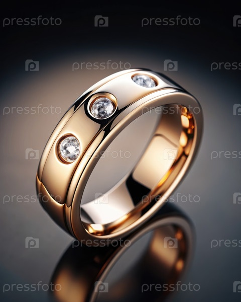 Близкий взгляд на золотое кольцо с тремя бриллиантами