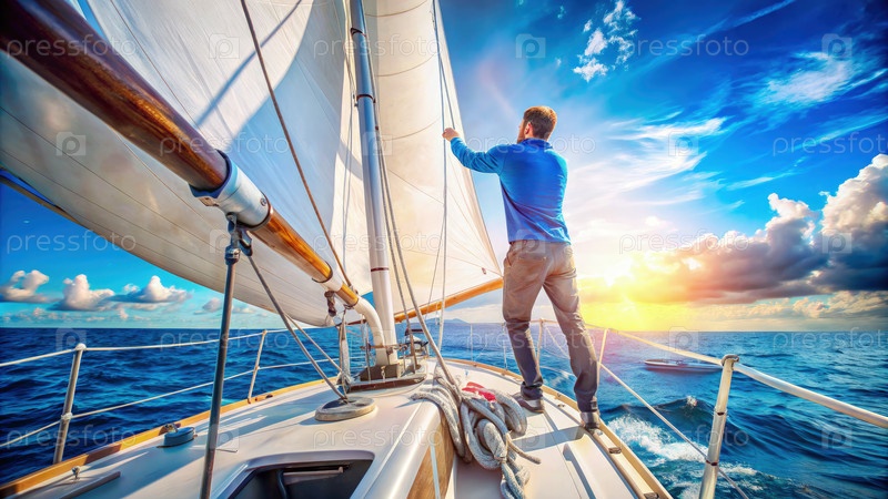 Человек, регулирующий паруса на яхте во время круиза "Закат"