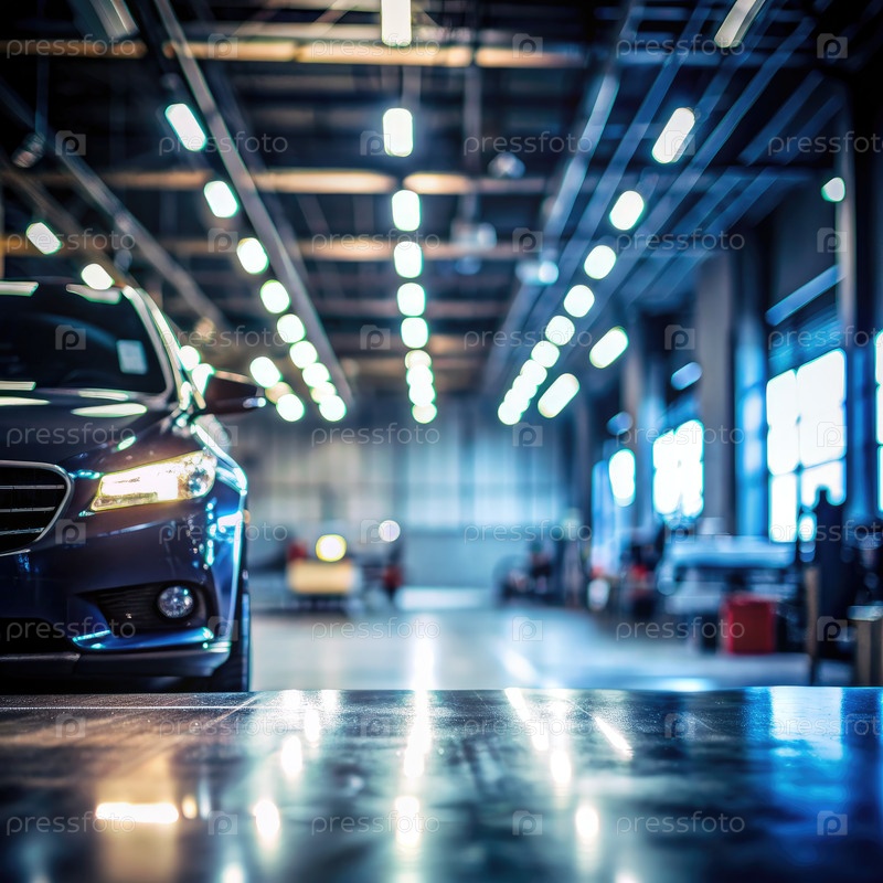 Выставочный зал автомобилей с яркими огнями и блестящим полом
