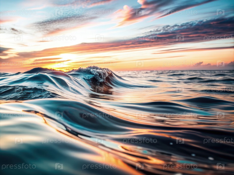 Спокойные волны захода солнца отражают золотые оттенки над спокойным океаном