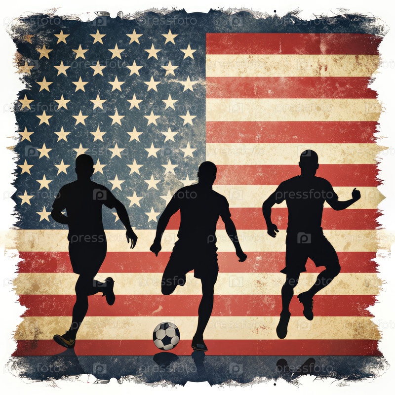 Три футбольных игрока в силуэт против американского флага