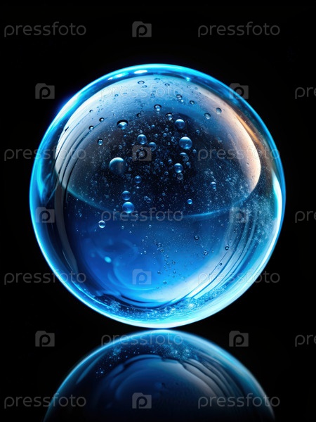 Одинокий голубой водяной пузырь на черном фоне