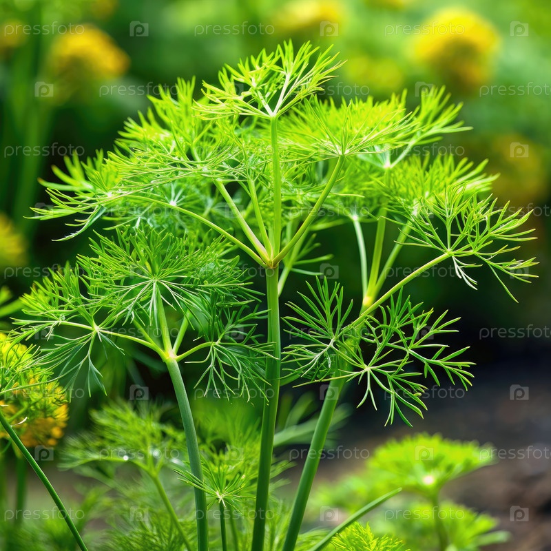 Растение пышного зеленого укропа, растущее в саду. генеративный ИИ