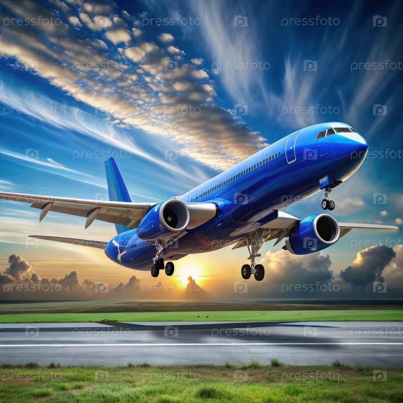 Пассажирский самолет взлетает на закате