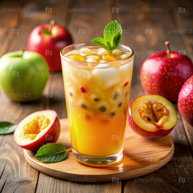 Освежающая лимонада из страстного фрукта с льдом и мятой