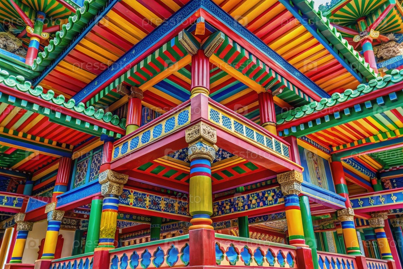 Красочная архитектура деревянной пагоды в Азии