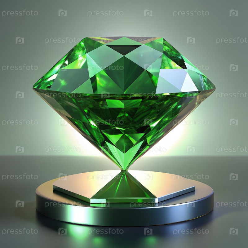 Большой зеленый алмаз, лежащий на серебряном пьедестале