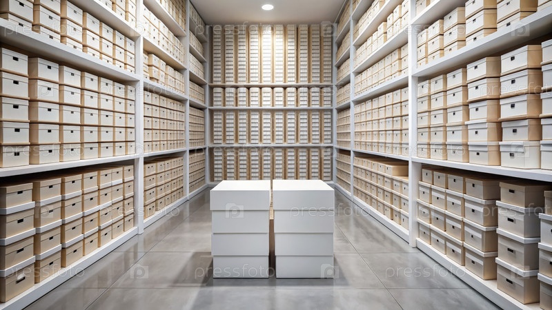Белые коробки для обуви хранятся на розничном складе