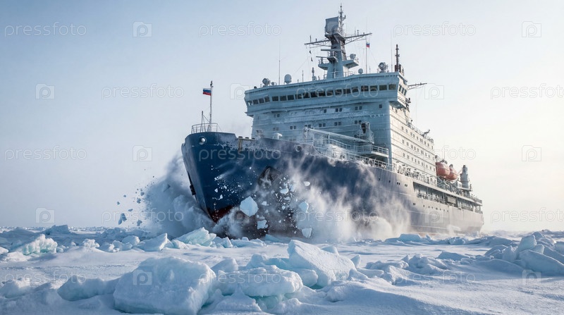 Атомный ледокол прокладывает путь во льдах