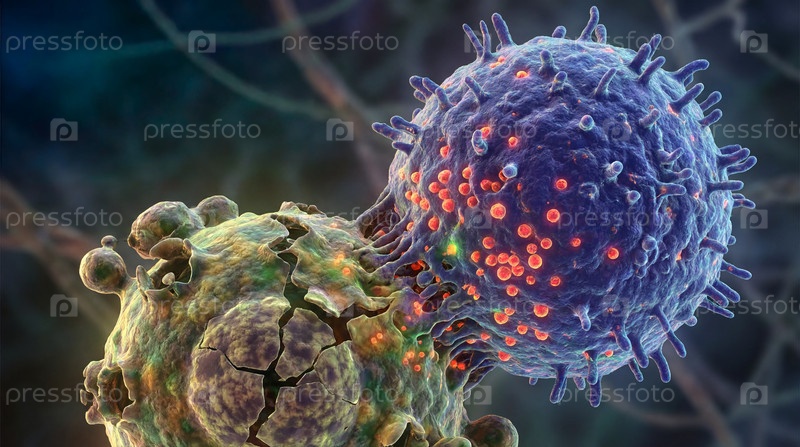 Киллерные клетки иммунитета атакуют инфекцию под микроскопом