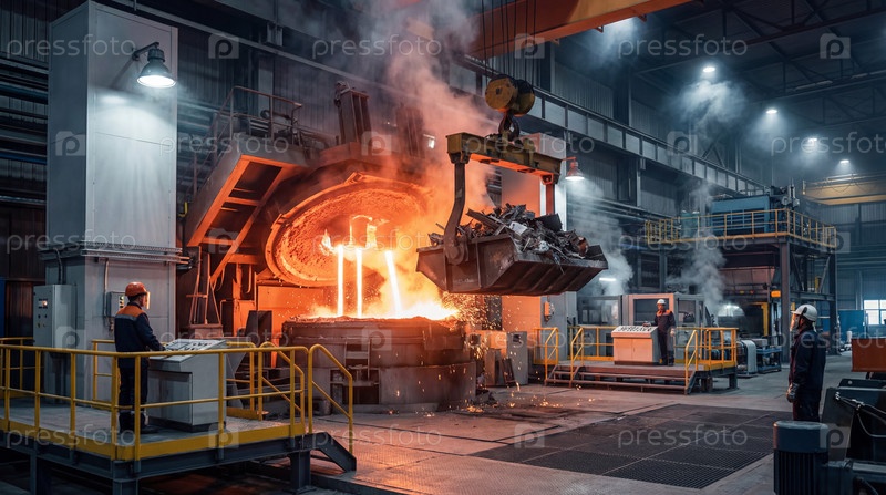 Раскаленный металл в цехе металлургического завода