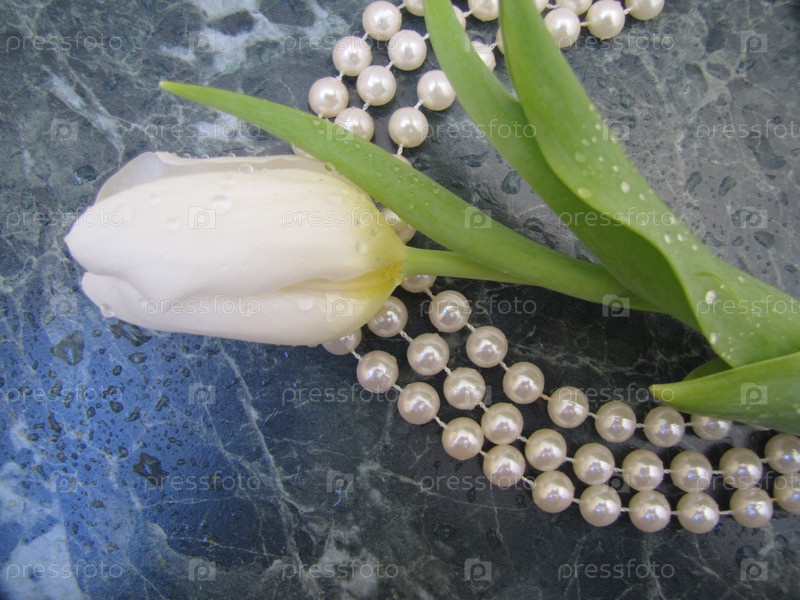 Белый тюльпан и жемчужные бусины