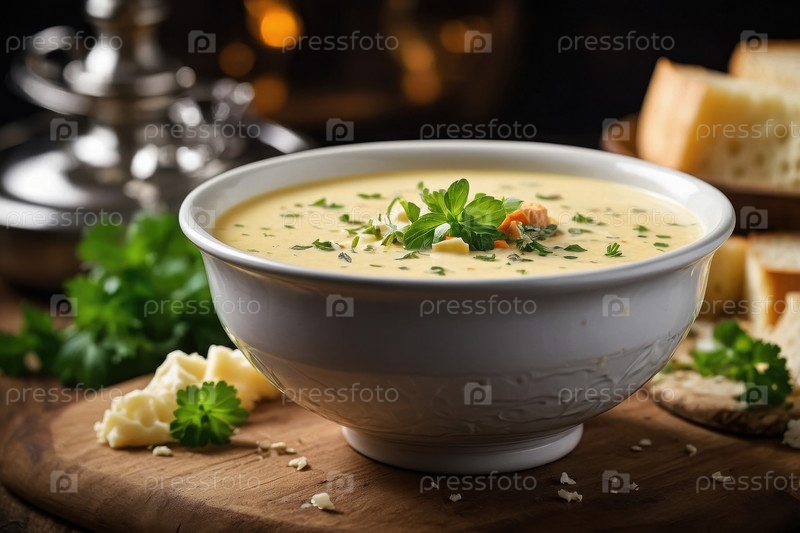 Традиционный органический сырный суп в миске ужин обед, овощи вегетарианская кухня AI Generative
