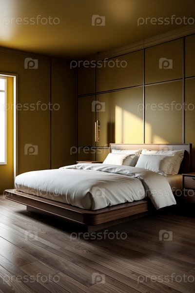 ИИ генеративный современный уютный интерьер спальня квартирная комната желтый цвет, комфортный дизайн дома