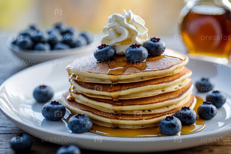 Завтрак из блинчиков с медом и чернилами ягод, сладкий десерт выпечка кухня AI Generative