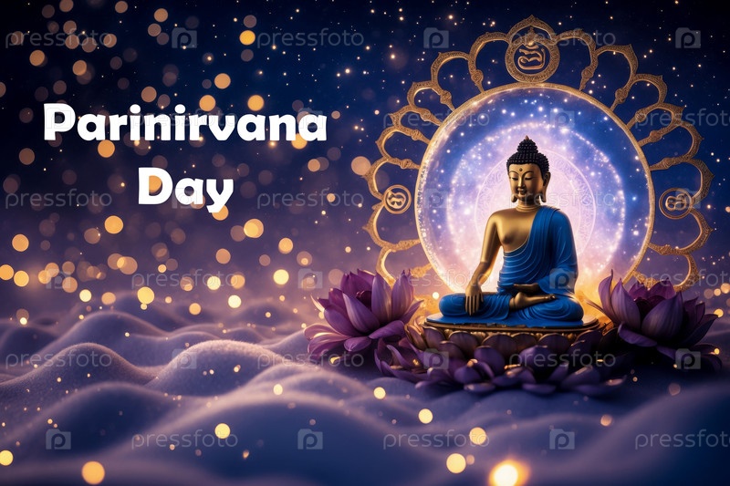 Генеративная открытка Поздравления с буддийским праздником День Паринирвани в честь Будды, достигшего полной нирваны AI