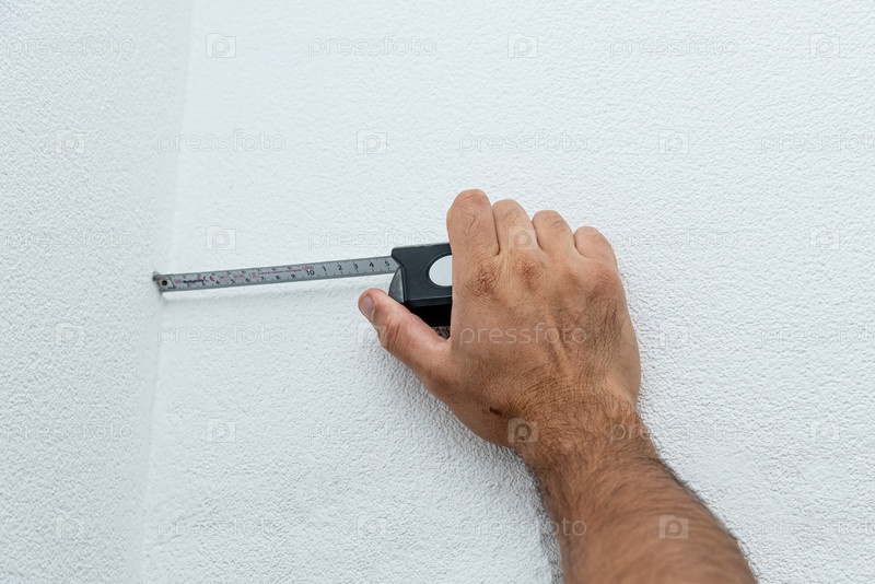 Человек-ремонтник различные меры расстояния с строительной лентой измерения для небольших косметических ремонтов