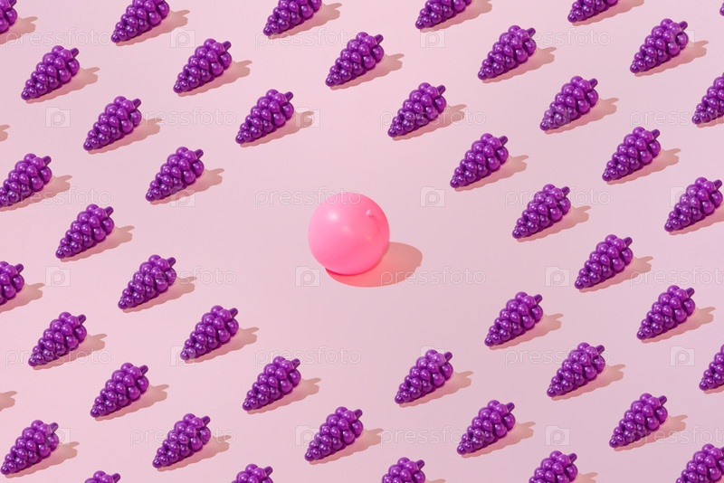 Креативный виноград и персиковый рисунок плоский лей пастельный розовый фоне минимализм