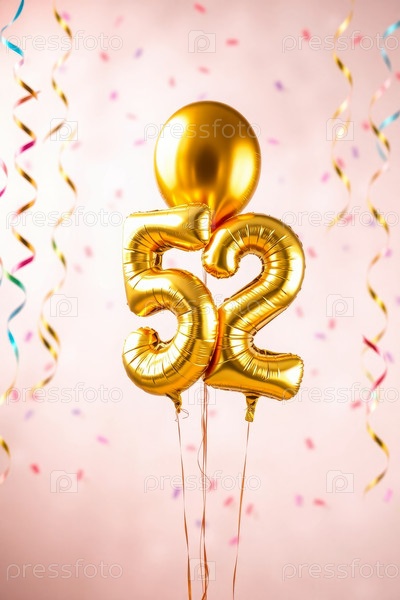 Гелий день рождения воздушный шар формы номер пятьдесят два, золотые буквы фигура 52 праздник праздничный фон декор