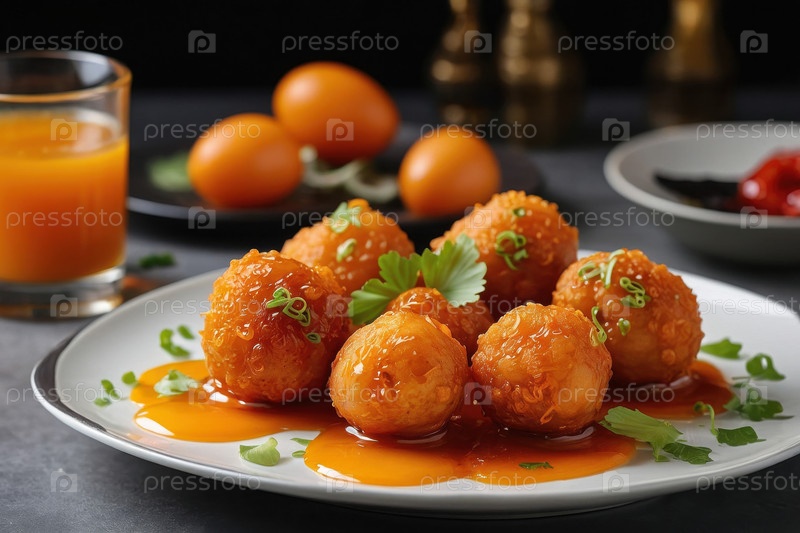 Филиппинская уличная закуска Kwek Kwek, куриное яйцо в тесто с хрустящей корой и пряным соусом AI Generative