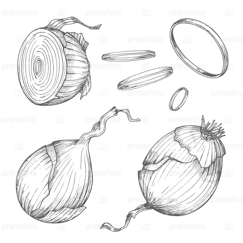 Набор лука.Векторная чернила в стиле ручной иллюстрации.Для дизайна упаковки, карточек, обложки, печати, этикеток на продуктах и ткани