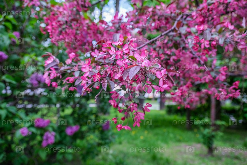 Цветущая ветка розовой яблони