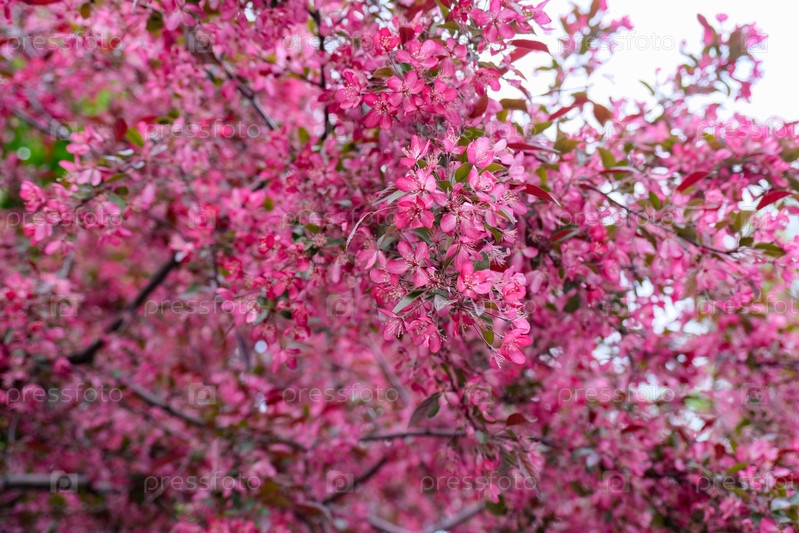 Цветущая ветка розовой яблони