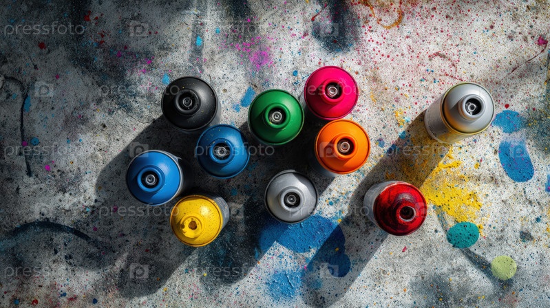 Спрей используется на улице и краска может рисовать с граффити аэрозольным видом. стены желтые банки и спрей макет верхний с красным цветом использованный. низкий подстилка распыления и угол окраски красителя с близким снимком могут грунтоваться