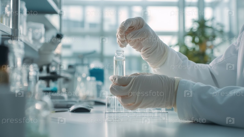 Лабораторный химический эксперимент с лабораторными научными исследованиями и тестирование клинического здоровья.Люди биобиомедицина с синей лабораторией японская и фармацевтическая титрационная флакона.Медицинская лаборатория микроскопа