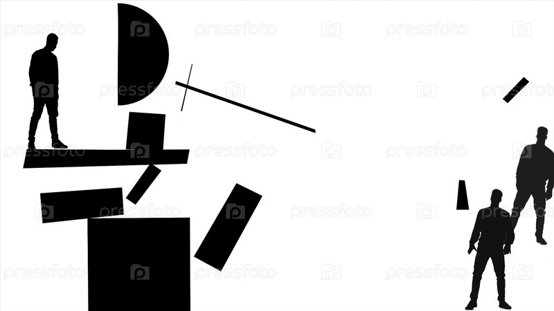 Стиль искусства супрематизма с тремя абстрактными мужчинами в действии, монохромный