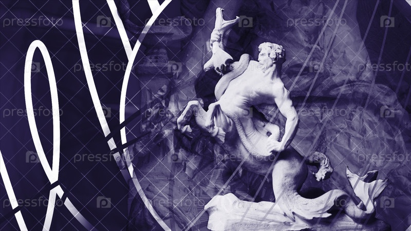 Фиолетовый и бирюзовый фон. Движение. Яркие старинные скульптуры, появляющиеся и исчезающие с белыми линиями в абстракции. Высокое качество 4k кадров