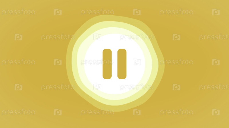 Символ паузы установлен в абстрактном слоистом желтом и оранжевом круге, представляющем средства управления СМИ