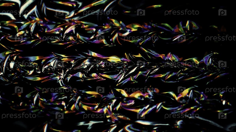 Темный медленно движущийся светящийся волнообразный фон, бесшовная петля. Движение. Черное липкое вещество с красочными пятнами, медленно размахивающими