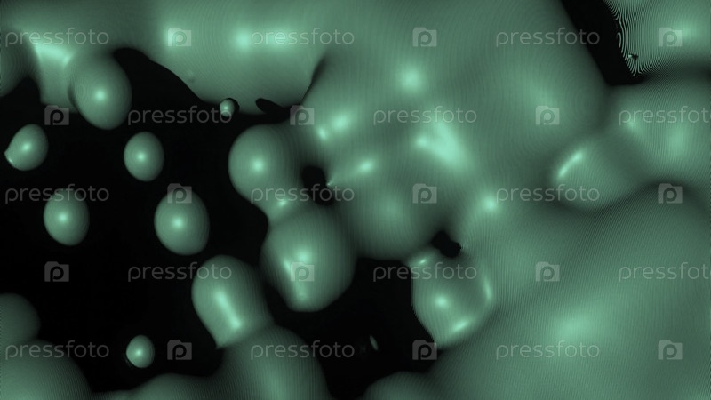 Анимация с движущимися капельками жидкости. Дизайн. Жидкость с округлыми каплями, двигающимися волнами. Движение жидкости на черном фоне