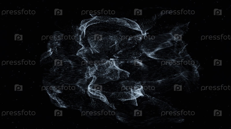 Цифровая анимация серых движущихся частиц, образующих иконку приложения Skype на черном фоне. Анимация. Иконы приложений социальных сетей, технологий, социальных медиа и интернет-фондов