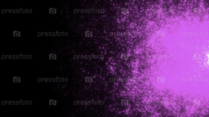 Темный фон.Движение.Летающая маленькая искра в 3D-анимации фиолетовых и зеленых цветов