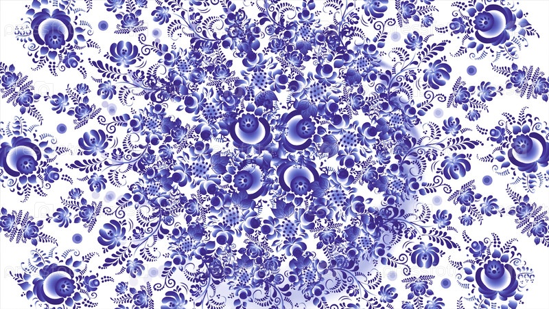 Анимация голубого хохломы на белом фоне. Ретро стиль русского хохолы