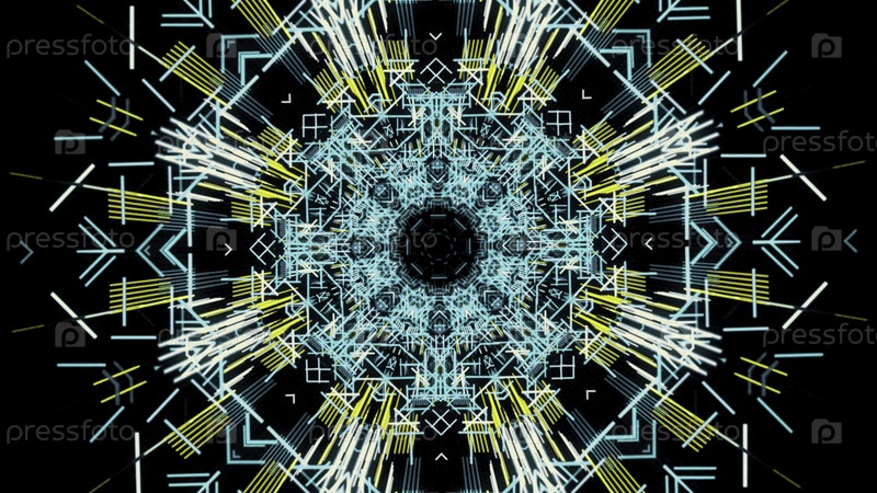 Гипнотическая абстрактная анимация голографического тоннеля с неоновыми геометрическими узорами, медленно движущимися на черном фоне