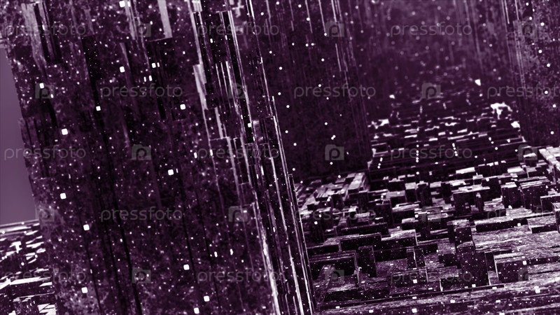 Полет в цифровой технологический туннель с 3D-объектами больших данных.Движение.Технологический и подключительный фон движения, концепция искусственного интеллекта