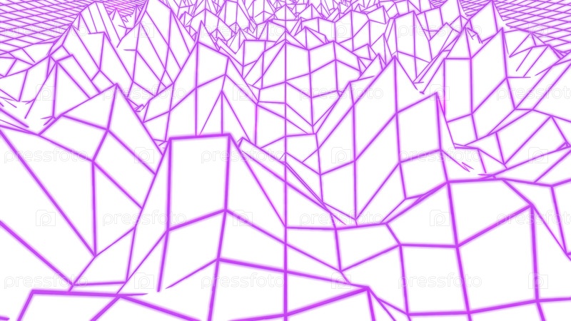 Абстрактная летающая 3D-структура, похожая на горы. Дизайн. Многоугольная геометрическая поверхность