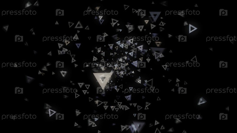 Абстрактный фон многочисленных белых треугольников, хаотично плавающих на черном. анимация. компьютерное генерирование абстрактного пространства