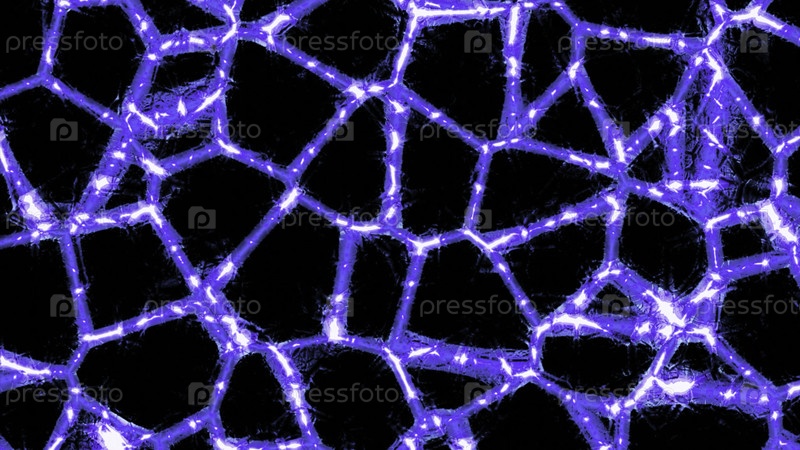 Образец с движущимися нейронными сетями на черном фоне. Дизайн. Яркие линии в движущемся рисунке и сияющие импульсы. Световые импульсы перемещаются по изменяющейся сети шаблонов