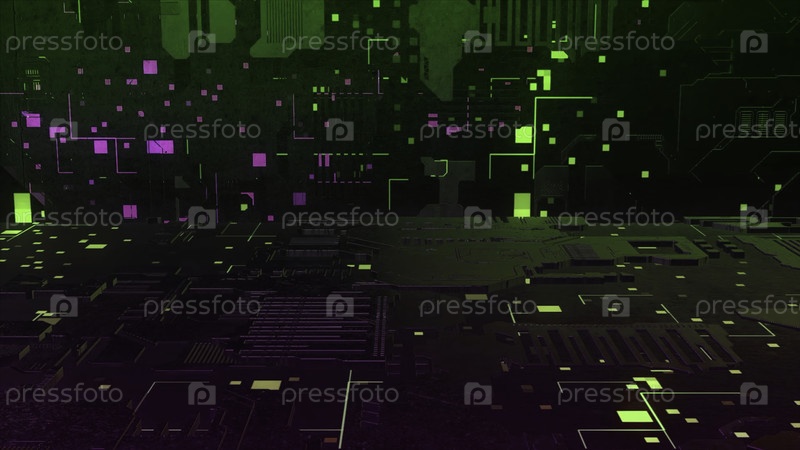 Летать в киберпространстве с красивыми абстрактными цифровыми частицами.Движение.Быстрые электроны, движущиеся внутри компьютерного процессора, бесшовная петля