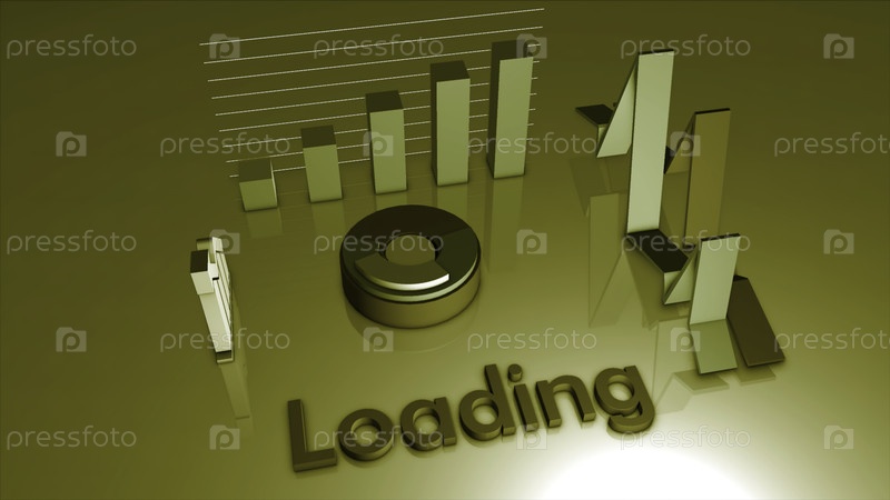 Абстрактный технологический фон с загрузкой слов. Движение. Красочные вращающиеся диаграммы и графики