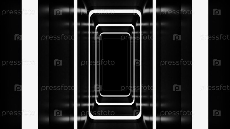 Абстрактный черно-белый футуристический тоннель с яркими световыми линиями, создающий иллюзию глубины