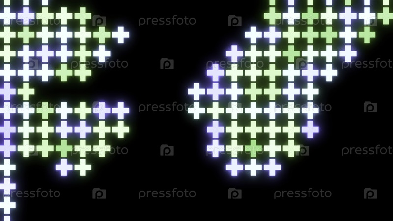 Черный фон. дизайн. зеленые и синие кресты небольших размеров в анимации, которые в свою очередь исчезают и появляются. высокое качество 4k кадры
